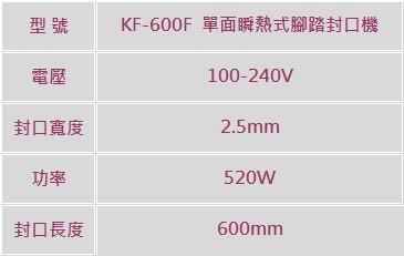 《3-3》KF-600F 單面瞬熱式腳踏封口機