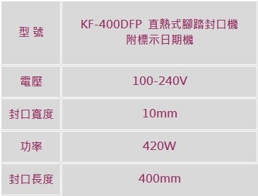 《7-3》KF-400DFP 直熱式腳踏封口機附標示日期機
